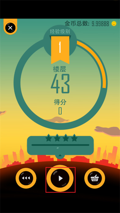 5、當(dāng)失敗之后,玩家則需要點(diǎn)擊屏幕之中的黃色播放按鈕,以重新開始游戲。