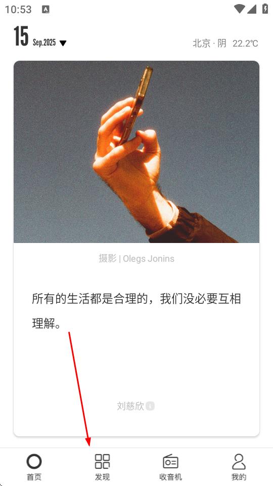 1、打開(kāi)one一個(gè)App,點(diǎn)擊底部導(dǎo)航欄中的發(fā)現(xiàn)選項(xiàng)。