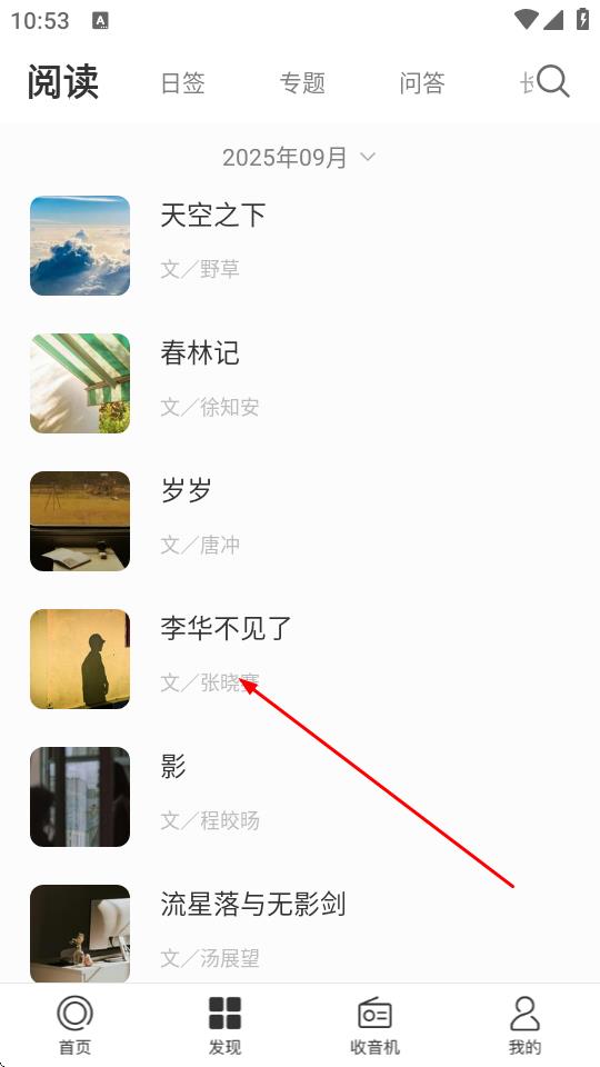 2、在“發(fā)現(xiàn)”頁(yè)面中,選擇一篇想要閱讀的文章,例如“李華不見(jiàn)了”,點(diǎn)擊進(jìn)入文章閱讀頁(yè)面。