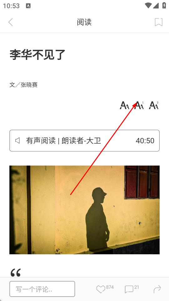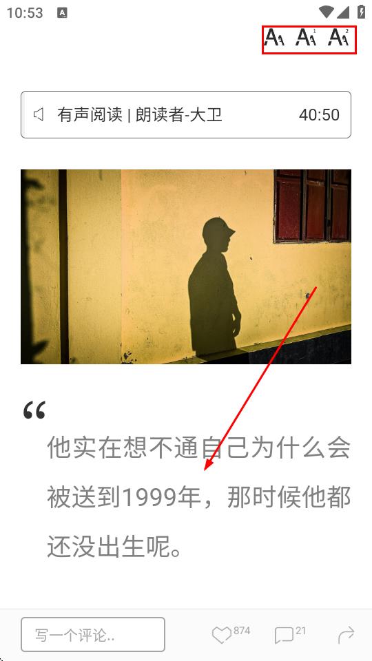 3、在文章閱讀頁(yè)面,點(diǎn)擊右上角字體設(shè)置圖標(biāo)。