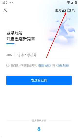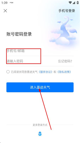 4、輸入賬號和密碼,點(diǎn)擊進(jìn)入墨跡天氣即可完成登錄。