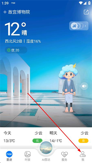 1、打開墨跡天氣APP,點(diǎn)擊底部導(dǎo)航欄最右側(cè)我的。