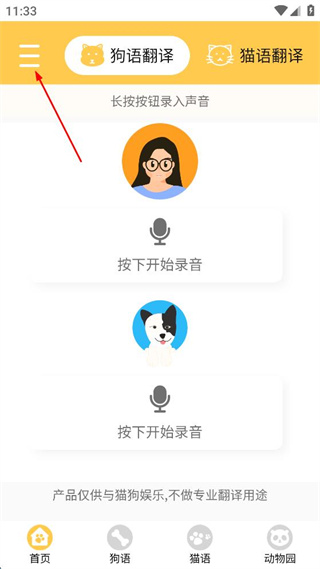 -內(nèi)置多種貓叫、狗叫聲和對應(yīng)的中文翻譯,快速讀懂聲音里的含義。