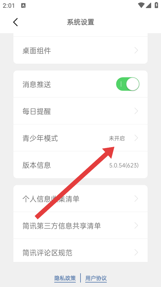 3、在系統(tǒng)設(shè)置界面,點(diǎn)擊青少年模式,進(jìn)入模式開啟界面。