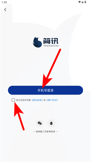 3、在登錄選擇頁面,勾選同意后,點(diǎn)擊手機(jī)號登錄選項(xiàng),進(jìn)入驗(yàn)證碼登錄界面。