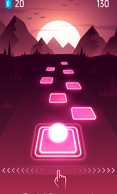 1.聆聽音樂節(jié)拍,并使用音樂反射將球向左或向右拖動(dòng),以將球從瓦片引導(dǎo)至瓦片??傊屢粋€(gè)球跳!