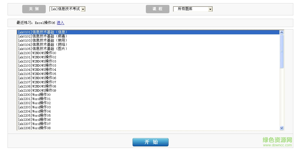 選擇要進行練習(xí)的試題,雙擊或者點擊開始進入如圖頁面,點擊“開始練習(xí)”進行練習(xí)。