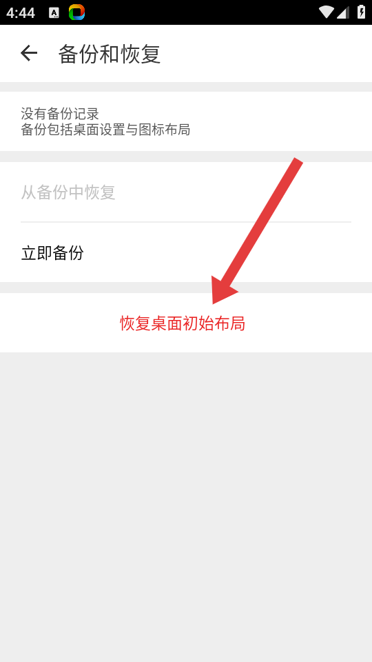 4、在備份和恢復(fù)頁面,點(diǎn)擊恢復(fù)桌面初始布局選項(xiàng),即可將360安全桌面恢復(fù)為初始設(shè)置。