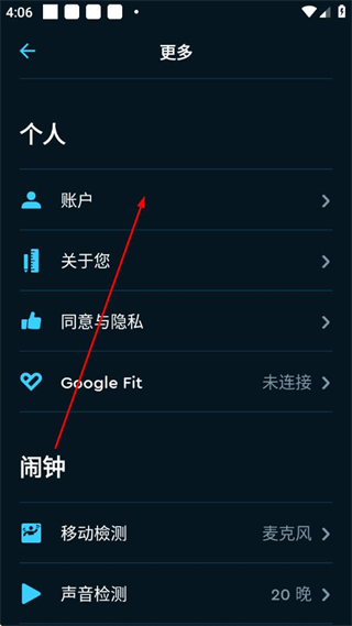 3、進(jìn)入更多設(shè)置頁面后,在鬧鐘板塊下,點(diǎn)擊聲音檢測選項(xiàng)。