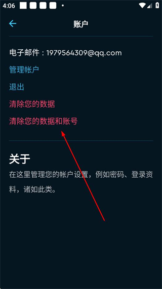 4、在賬戶頁面中,選擇清除您的數(shù)據(jù)或清除您的數(shù)據(jù)和賬號選項(xiàng),完成數(shù)據(jù)清除。