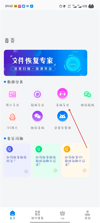 1、打開數(shù)據(jù)恢復(fù)應(yīng)用,點(diǎn)擊音頻導(dǎo)出選項(xiàng)。