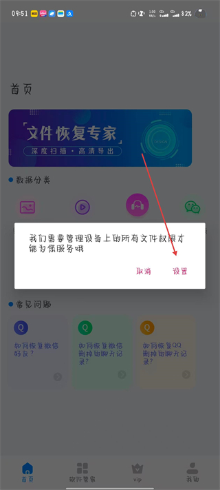 2、點(diǎn)擊設(shè)置按鈕,授予管理設(shè)備所有文件的權(quán)限。