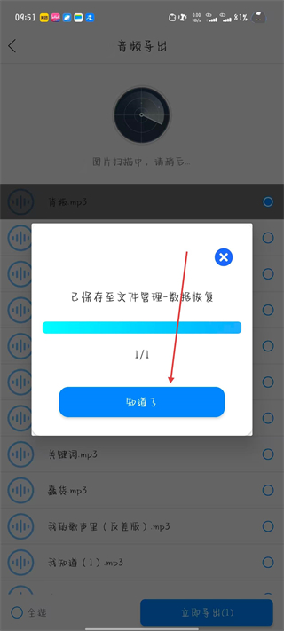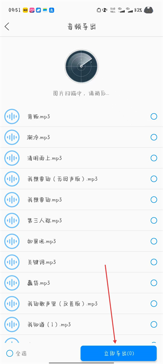 3、選擇需要導(dǎo)出的音頻文件,點(diǎn)擊立即導(dǎo)出按鈕。