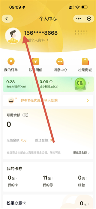 1、在松果出行首頁(yè),點(diǎn)擊左上角頭像區(qū)域,進(jìn)入個(gè)人中心界面。