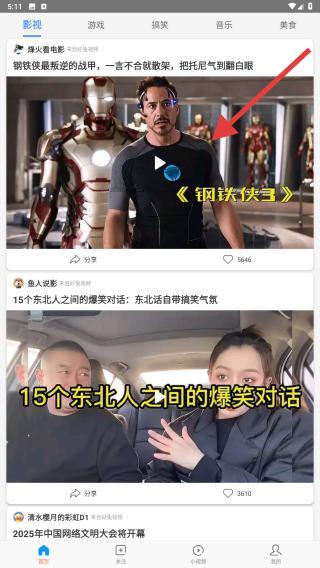 2、進(jìn)入APP首頁,系統(tǒng)會根據(jù)你的喜好推薦視頻,上下滑動屏幕切換內(nèi)容,精準(zhǔn)查找感興趣的領(lǐng)域視頻。