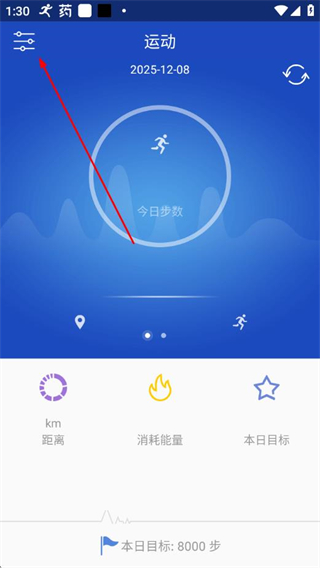 1、在優(yōu)活手環(huán)對(duì)應(yīng)的app運(yùn)動(dòng)頁面,點(diǎn)擊左上角的設(shè)置圖標(biāo),進(jìn)入設(shè)置頁面。
