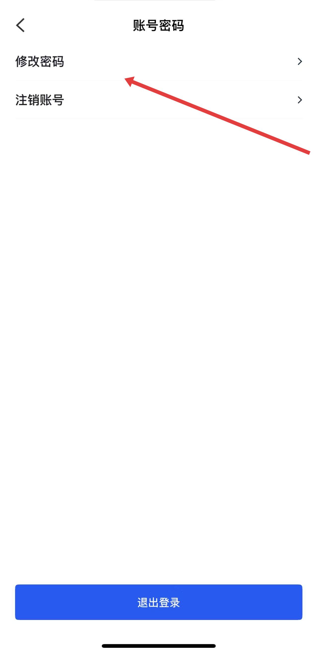 3、進(jìn)入賬號(hào)密碼頁(yè)面后,點(diǎn)擊修改密碼選項(xiàng)。