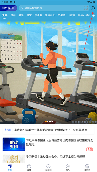 1、打開(kāi)河北廣播電視臺(tái)APP,進(jìn)入時(shí)點(diǎn)擊右上角人像的圖標(biāo)。