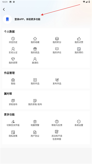 2、進(jìn)入個(gè)人主頁(yè)內(nèi),點(diǎn)擊上方登錄APP,體驗(yàn)更多功能的區(qū)域。