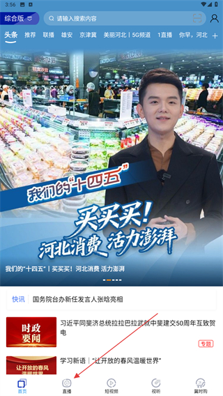1、打開(kāi)河北廣播電視臺(tái)APP,進(jìn)入首頁(yè)點(diǎn)擊直播的標(biāo)簽。