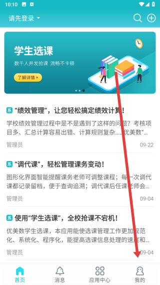 1、可以點擊江陰智慧云校首頁下的我的按鈕,進入到我的主頁中。