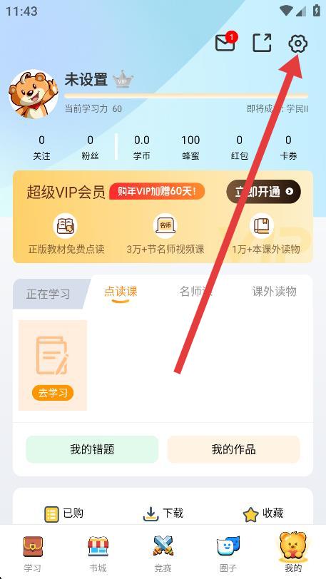 2、在我的頁面,點(diǎn)擊右上角的圖標(biāo),進(jìn)入設(shè)置頁面。