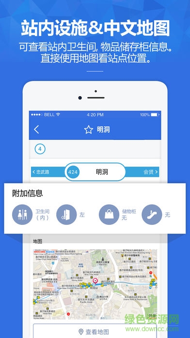 可查找站內(nèi)衛(wèi)生間、物品儲(chǔ)存柜等設(shè)施信息