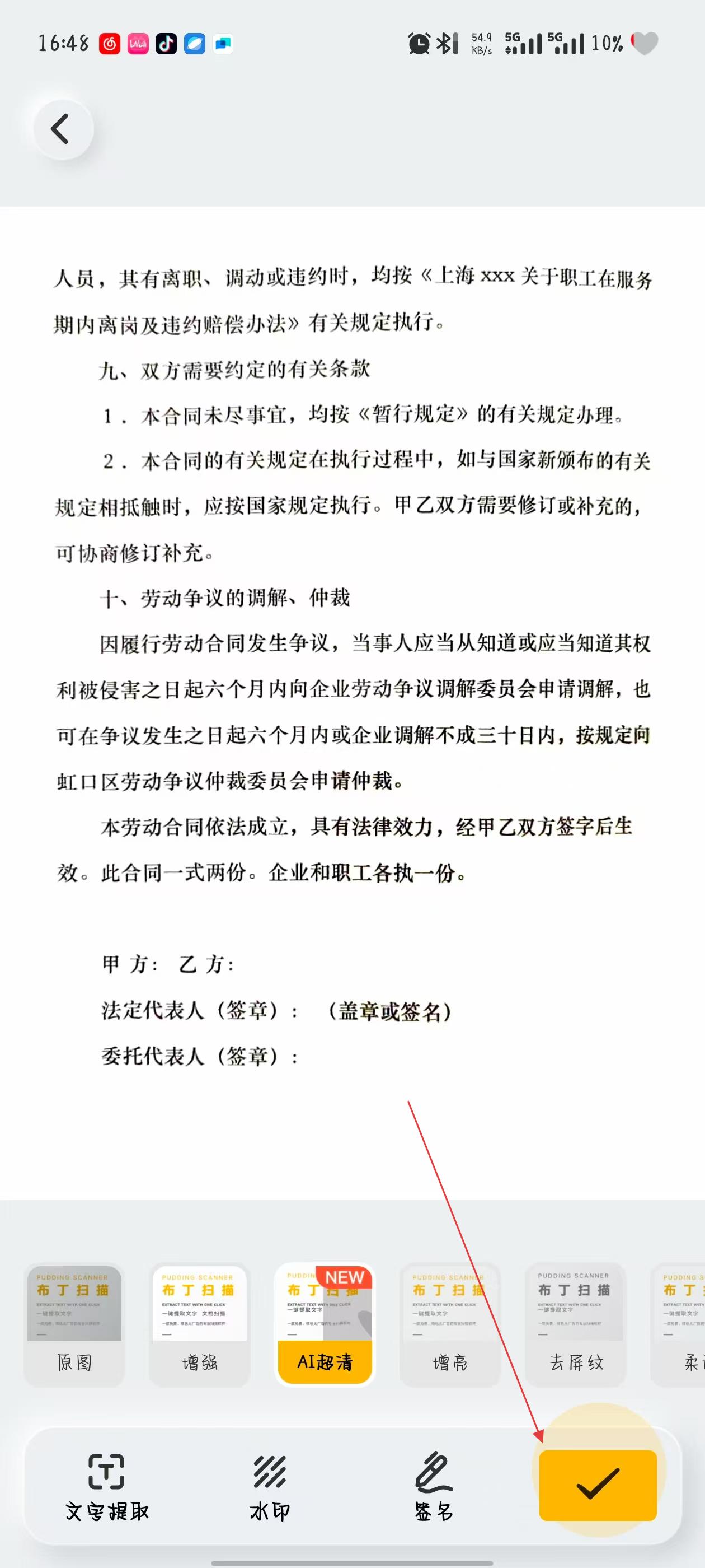 4、對(duì)掃描后的文檔圖像進(jìn)行優(yōu)化處理,然后點(diǎn)擊界面右下角的打勾按鈕即可。