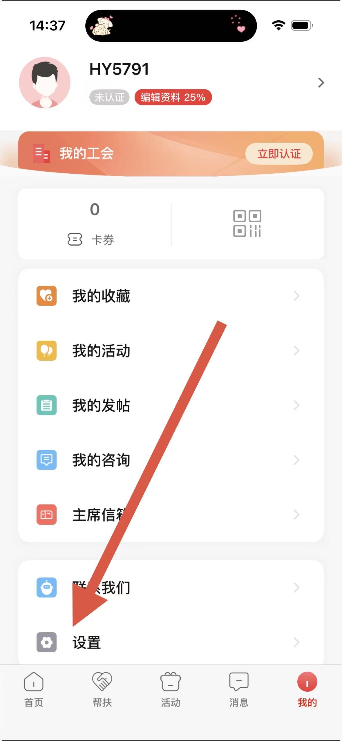 2、在個人頁面中,點(diǎn)擊設(shè)置選項(xiàng),進(jìn)入設(shè)置界面。