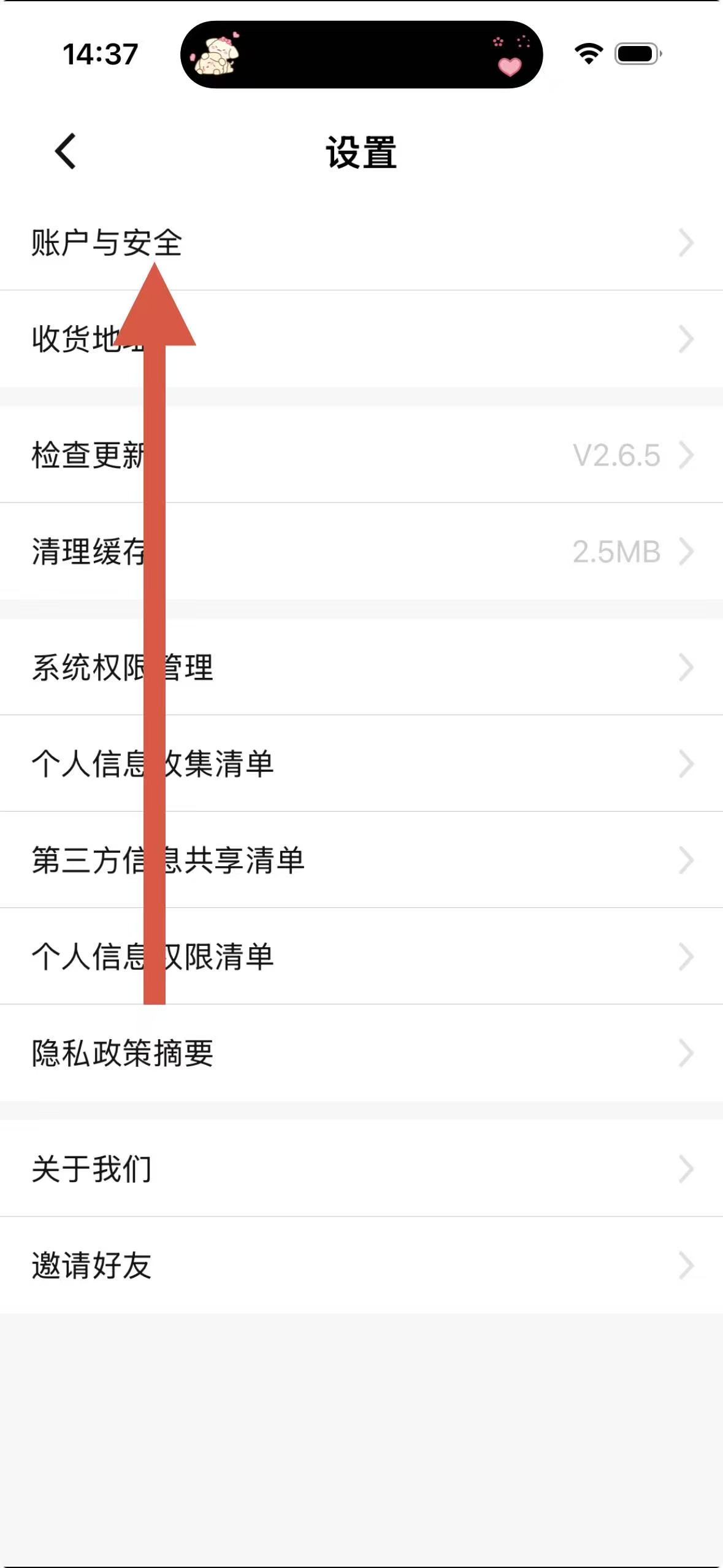 3、在設(shè)置界面里,點(diǎn)擊賬戶與安全選項(xiàng),進(jìn)入賬戶與安全設(shè)置頁面。