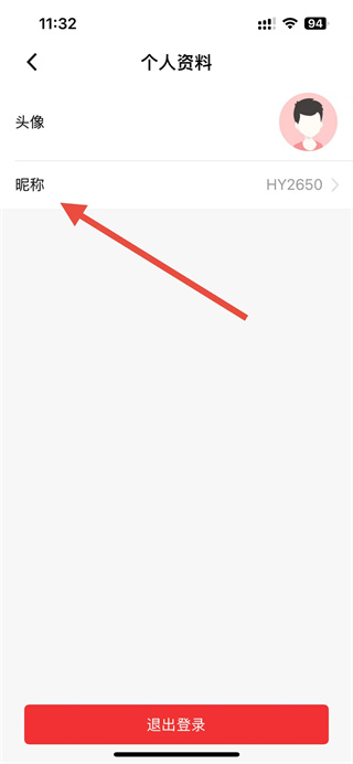 3、在個人資料頁面,點(diǎn)擊昵稱選項(xiàng),進(jìn)入編輯昵稱頁面。