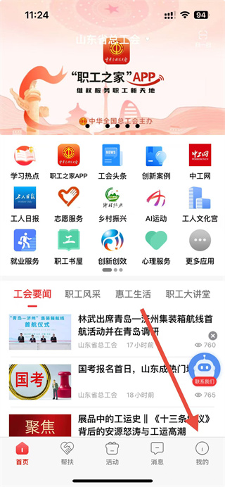 1、打開齊魯工惠app,點(diǎn)擊底部導(dǎo)航欄中的我的選項(xiàng)。