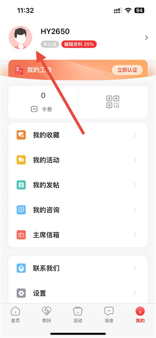 2、在我的頁面,點(diǎn)擊個人頭像,進(jìn)入個人資料頁面。