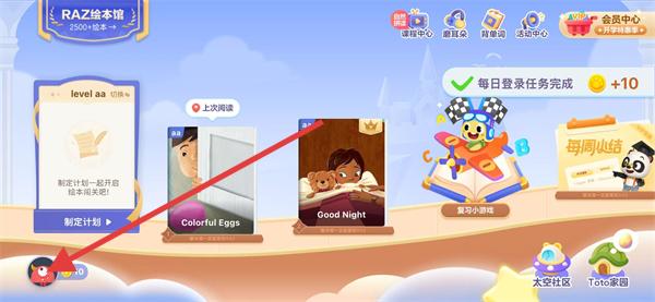 1、打開英語分級閱讀,點(diǎn)擊左下角的頭像圖標(biāo)。