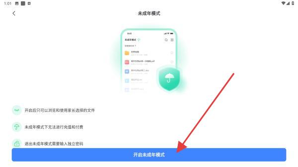 4、仔細(xì)閱讀開(kāi)啟后的相關(guān)內(nèi)容,再點(diǎn)擊開(kāi)啟未成年模式即可。