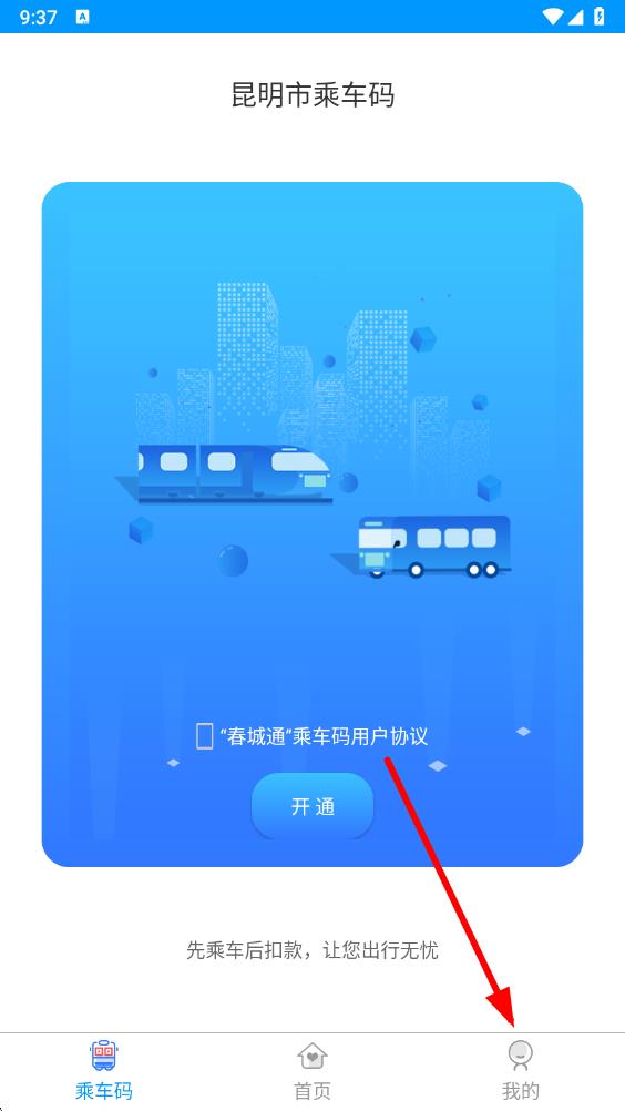 1、打開春城e路通app,點擊底部導(dǎo)航欄中的我的,進入個人相關(guān)頁面。