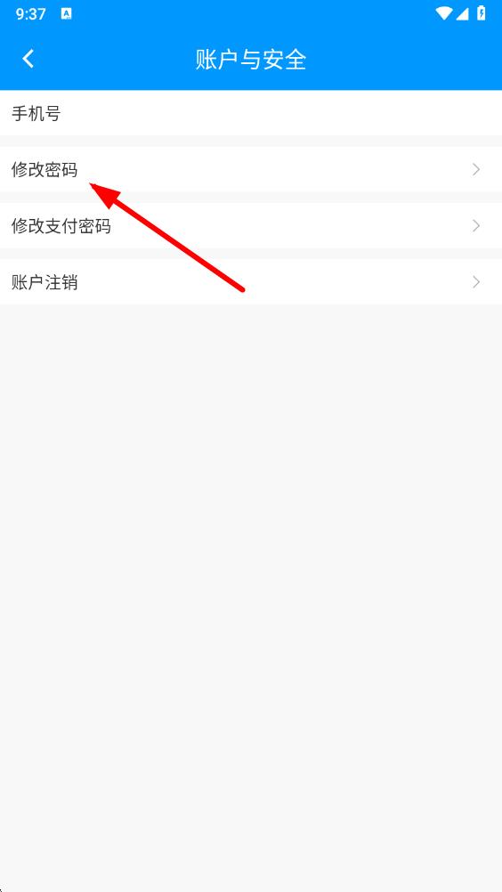 4、在賬號與安全頁面,點擊修改密碼選項,進入密碼修改界面。
