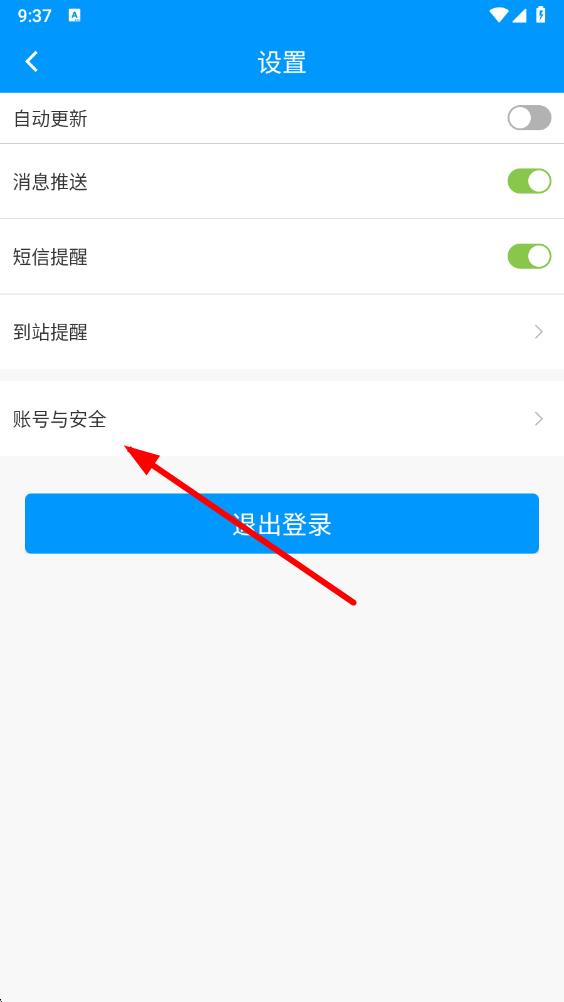 3、在設(shè)置頁面中,點擊賬號與安全選項,進入賬號安全設(shè)置頁。