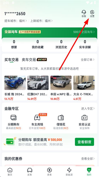 1、打開瓜子二手車APP,點擊底部導(dǎo)航欄的我的選項,進入個人頁面。