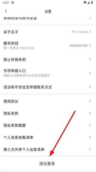 3、在設(shè)置頁面中,點擊底部找到退出登錄選項,彈出是否退出登錄的確認(rèn)彈窗。