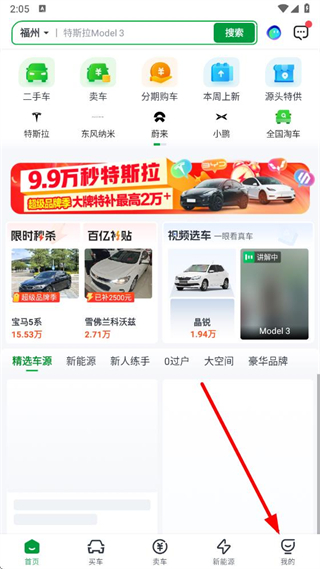 1、打開瓜子二手車APP,點擊底部導(dǎo)航欄的我的,進入個人頁面。