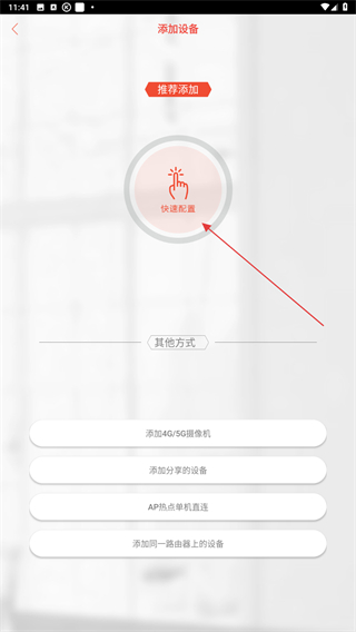 2、在添加設(shè)備的界面內(nèi),點擊快速配置的功能按鈕。