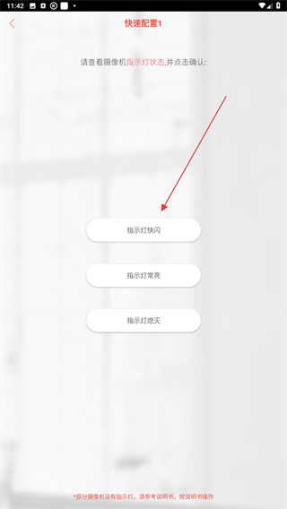 3、在快速配置的界面內(nèi),點擊下方指示燈快閃的按鈕。