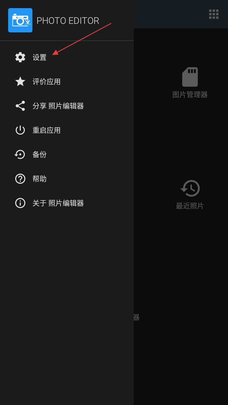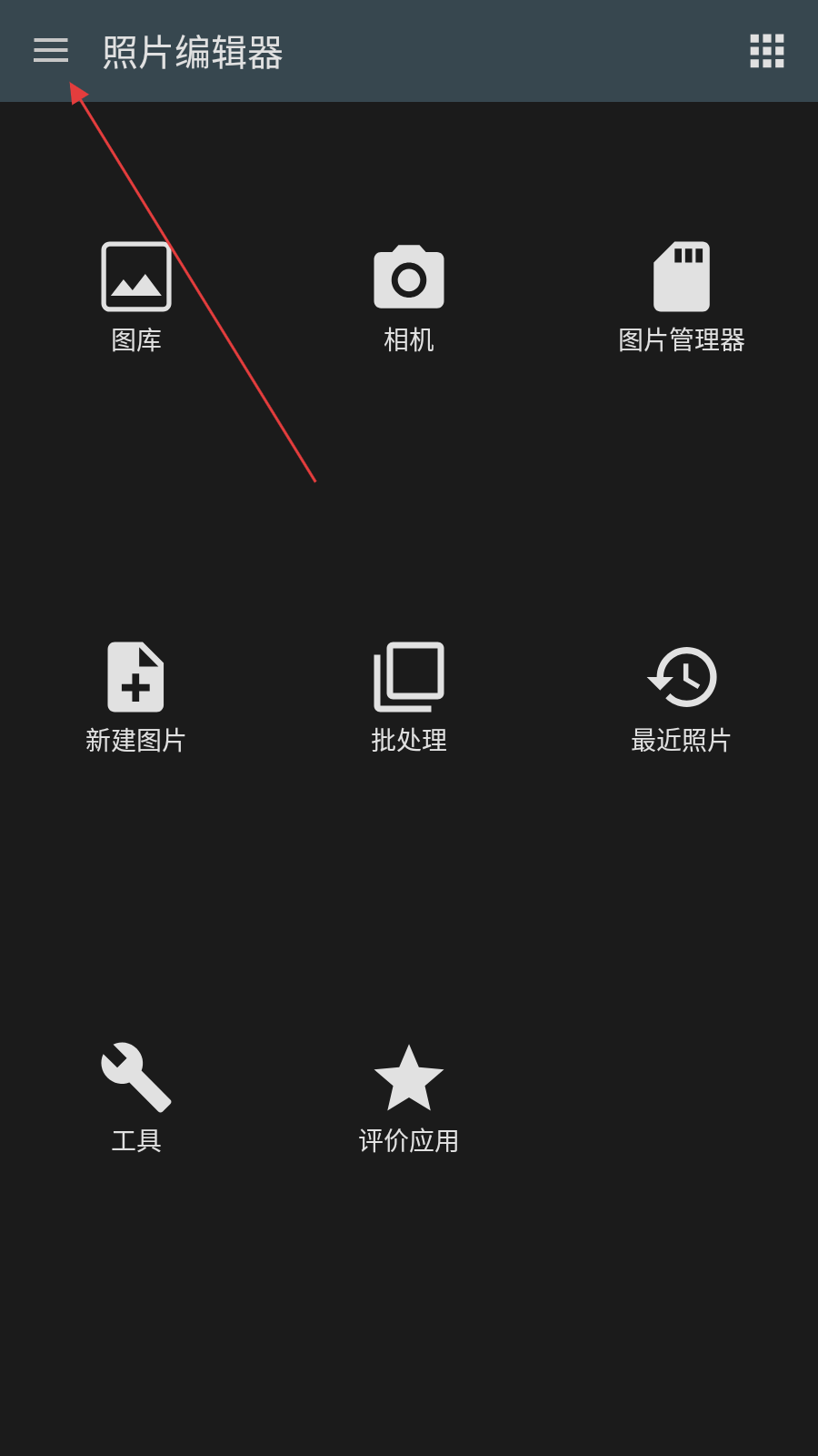 1、打開(kāi)照片編輯器,點(diǎn)擊界面左上角的菜單按鈕,展開(kāi)側(cè)邊欄菜單。