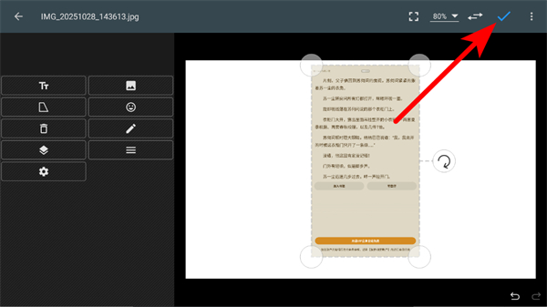 4、編輯完成后,點(diǎn)擊右上角的對(duì)勾按鈕,即可保存編輯后的圖片。