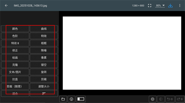 3、在編輯頁(yè)面,可使用左側(cè)的顏色、曲線、色階等功能對(duì)圖片進(jìn)行編輯。