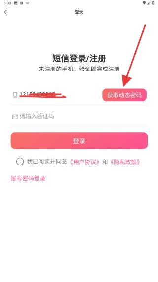 3、在此頁面內(nèi),輸入要登錄的手機號,并點擊獲取動態(tài)密碼。