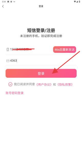 4、將收到的驗證碼輸入進去,再點擊登錄的按鈕即可。