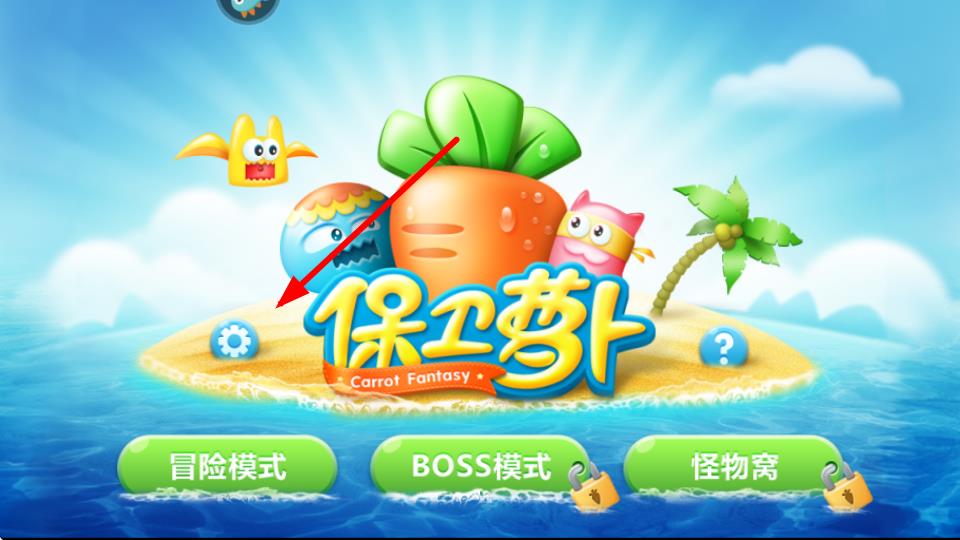 1、打開保衛(wèi)蘿卜,在游戲主界面中,找到并點(diǎn)擊如圖中所示設(shè)置圖標(biāo),進(jìn)入設(shè)置相關(guān)界面。