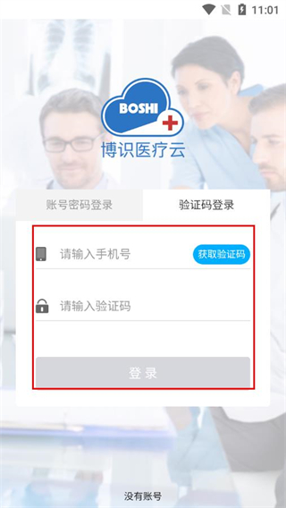 1、打開博識醫(yī)療云APP,在登錄頁面選擇驗證碼登錄。